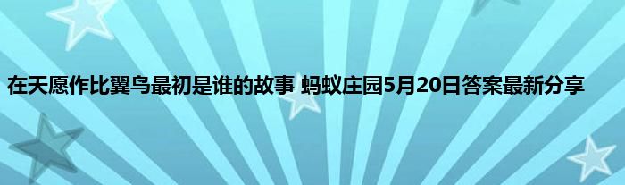 蚂蚁庄园在每天都会给玩家们带来一个有趣的答题的玩法,当你通过答出正确答案就可以拿到奖励了,其中2021年5月20日问题已经带来,今天问题是在天愿作比翼鸟最初是谁的故事?很多玩家不知道这道题目答案是什么了,那下面就让小编给玩家们带来详细的答案的介绍吧。