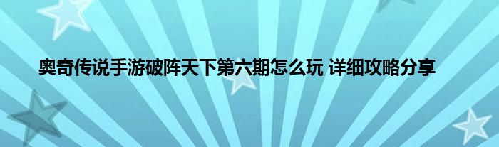 奥奇传说手游破阵天下第六期攻略大全