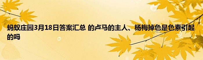 2021年3月18日蚂蚁庄园答案是什么?3月18日蚂蚁庄园的答案很多的玩家都不清楚,这两个问题有:“的卢马”的主人是?清洗杨梅时发现杨梅掉色?下面小编给大家介绍一下具体的答案和解析,一起来看看吧。