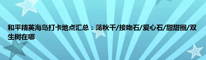 首先就是海岛地图了,这张地图的情侣打卡地点也是最多的,你可以带她去荡秋千,可以去看爱心石,还有接吻石,去飞车点体验非一般的感觉,去看山洞的隐形水花,这张地图只要是和平精英的玩家,想必都烂熟于心,具体位置我们就不多说了。