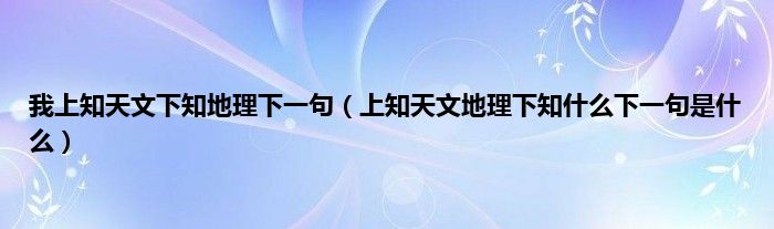 我上知天文下知地理下一句(上知天文地理下知什么下一句是什么)