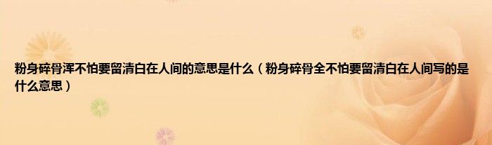 大家好,小科来为大家解答以上问题。粉身碎骨浑不怕要留清白在人间的意思是什么,粉身碎骨全不怕要留清白在人间写的是什么意思很多人还不知道,现在让我们一起来看看吧!