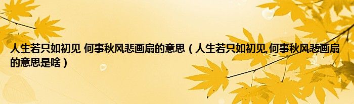 大家好,小科来为大家解答以上问题。人生若只如初见 何事秋风悲画扇的意思,人生若只如初见,何事秋风悲画扇的意思是啥很多人还不知道,现在让我们一起来看看吧!