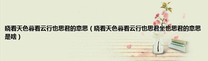 大家好,小科来为大家解答以上问题。晓看天色暮看云行也思君的意思,晓看天色暮看云行也思君坐也思君的意思是啥很多人还不知道,现在让我们一起来看看吧!