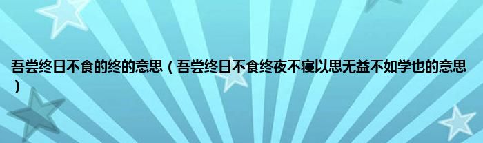 大家好,小科来为大家解答以上问题。吾尝终日不食的终的意思,吾尝终日不食终夜不寝以思无益不如学也的意思很多人还不知道,现在让我们一起来看看吧!