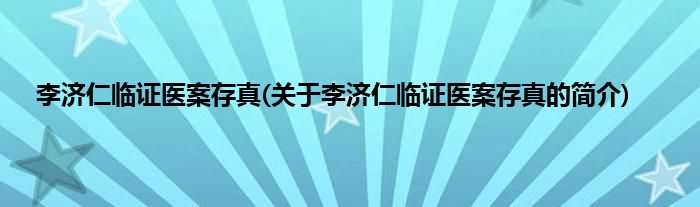 本文关于李济仁临证医案存真的简介就讲解完毕,希望对大家有所帮助。