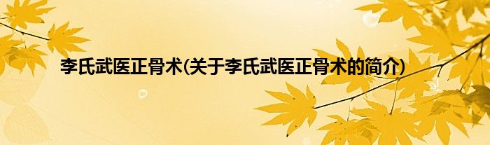 本文关于李氏武医正骨术的简介就讲解完毕,希望对大家有所帮助。