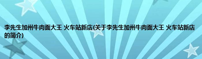 本文关于李先生加州牛肉面大王 火车站新店的简介就讲解完毕,希望对大家有所帮助。