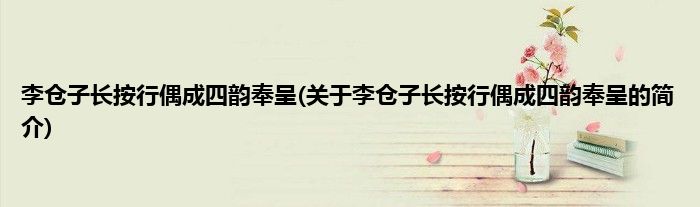 本文关于李仓子长按行偶成四韵奉呈的简介就讲解完毕,希望对大家有所帮助。
