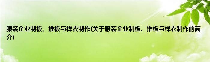 大家好,服装企业制板、推板与样衣制作,关于服装企业制板、推板与样衣制作的简介很多人还不知道,现在让我们一起来看看吧!