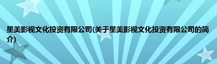 本文关于星美影视文化投资有限公司的简介就讲解完毕,希望对大家有所帮助。