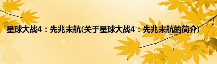 星球大战4:先兆末航(关于星球大战4:先兆末航的简介)