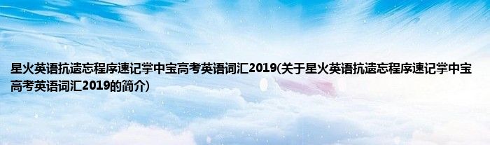 本文关于星火英语抗遗忘程序速记掌中宝高考英语词汇2019的简介就讲解完毕,希望对大家有所帮助。