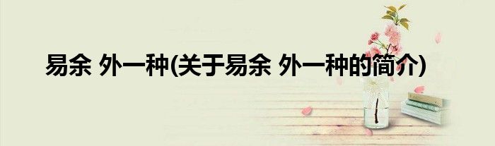 本文关于易余 外一种的简介就讲解完毕,希望对大家有所帮助。