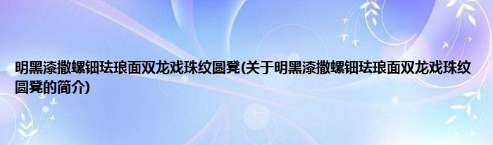 本文关于明黑漆撒螺钿珐琅面双龙戏珠纹圆凳的简介就讲解完毕,希望对大家有所帮助。