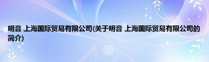 本文关于明音 上海国际贸易有限公司的简介就讲解完毕,希望对大家有所帮助。