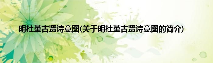 本文关于明杜堇古贤诗意图的简介就讲解完毕,希望对大家有所帮助。