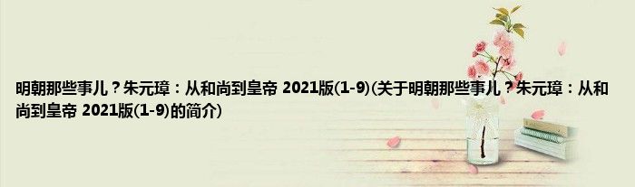 本文关于明朝那些事儿?朱元璋:从和尚到皇帝 2021版(1-9)的简介就讲解完毕,希望对大家有所帮助。