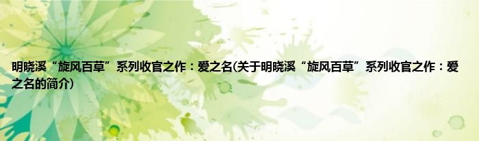 本文关于明晓溪“旋风百草”系列收官之作:爱之名的简介就讲解完毕,希望对大家有所帮助。