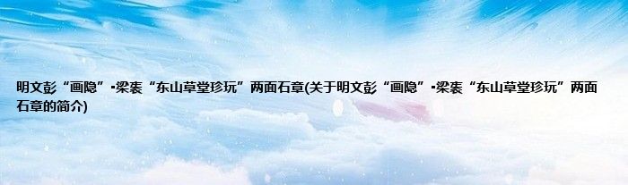 大家好,明文彭“画隐”▪梁袠“东山草堂珍玩”两面石章,关于明文彭“画隐”▪梁袠“东山草堂珍玩”两面石章的简介很多人还不知道,现在让我们一起来看看吧!