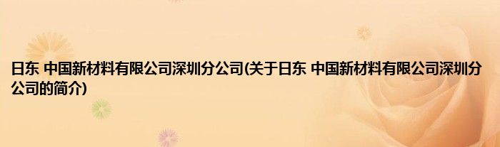 大家好,日东 中国新材料有限公司深圳分公司,关于日东 中国新材料有限公司深圳分公司的简介很多人还不知道,现在让我们一起来看看吧!