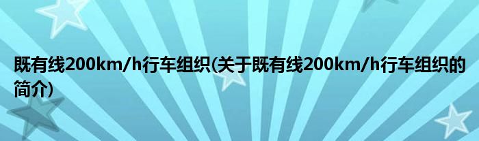 既有线200km/h行车组织(关于既有线200km/h行车组织的简介)