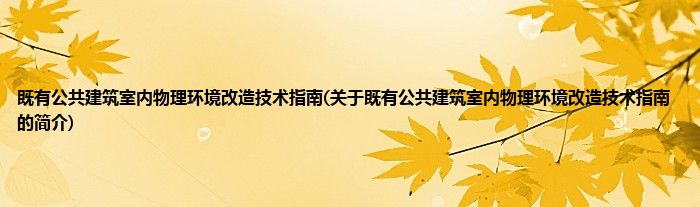 大家好,既有公共建筑室内物理环境改造技术指南,关于既有公共建筑室内物理环境改造技术指南的简介很多人还不知道,现在让我们一起来看看吧!