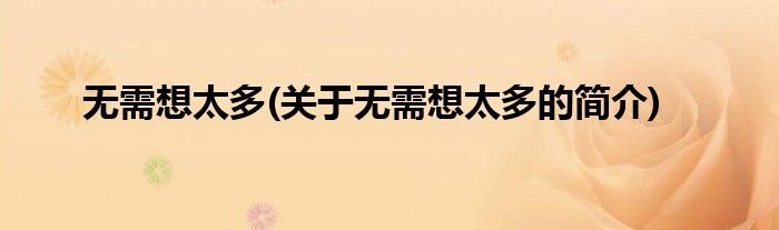 大家好,无需想太多,关于无需想太多的简介很多人还不知道,现在让我们一起来看看吧!