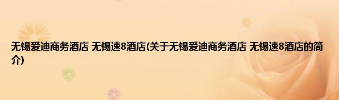 本文关于无锡爱迪商务酒店 无锡速8酒店的简介就讲解完毕,希望对大家有所帮助。