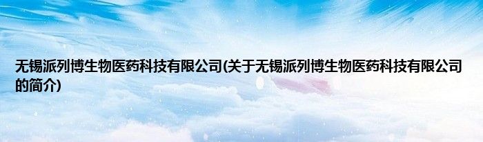本文关于无锡派列博生物医药科技有限公司的简介就讲解完毕,希望对大家有所帮助。