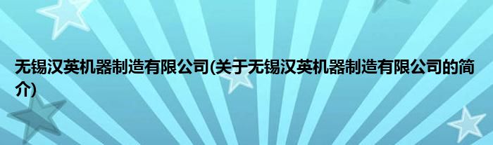 无锡汉英机器制造有限公司(关于无锡汉英机器制造有限公司的简介)