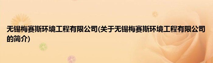 无锡梅赛斯环境工程有限公司(关于无锡梅赛斯环境工程有限公司的简介)