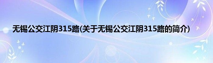 无锡公交江阴315路(关于无锡公交江阴315路的简介)