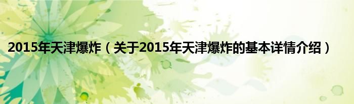 本文关于2015年天津爆炸的基本详情介绍就讲解完毕,希望对大家有所帮助。