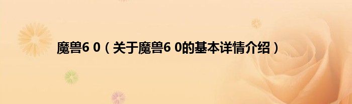 魔兽6 0(关于魔兽6 0的基本详情介绍)