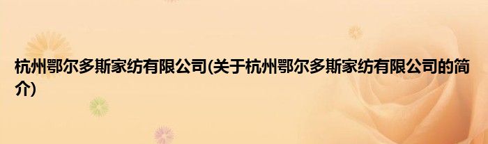 本文关于杭州鄂尔多斯家纺有限公司的简介就讲解完毕,希望对大家有所帮助。