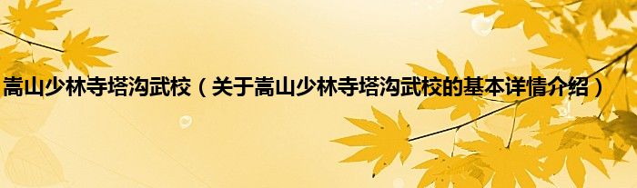 本文关于嵩山少林寺塔沟武校的基本详情介绍就讲解完毕,希望对大家有所帮助。