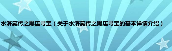 水浒笑传之黑店寻宝(关于水浒笑传之黑店寻宝的基本详情介绍)