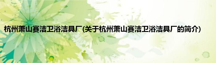 本文关于杭州萧山赛洁卫浴洁具厂的简介就讲解完毕,希望对大家有所帮助。