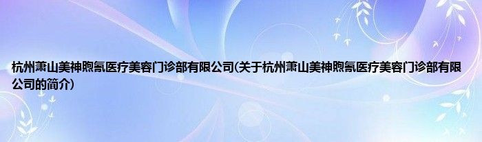 杭州萧山美神煦氰医疗美容门诊部有限公司(关于杭州萧山美神煦氰医疗美容门诊部有限公司的简介)