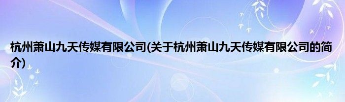 本文关于杭州萧山九天传媒有限公司的简介就讲解完毕,希望对大家有所帮助。