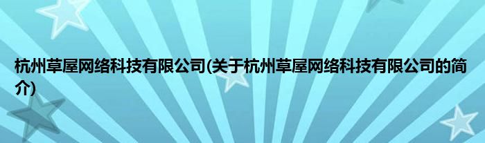 本文关于杭州草屋网络科技有限公司的简介就讲解完毕,希望对大家有所帮助。
