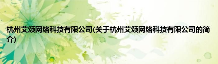 杭州艾颂网络科技有限公司(关于杭州艾颂网络科技有限公司的简介)