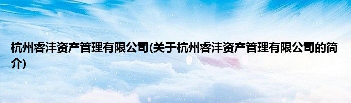 本文关于杭州睿沣资产管理有限公司的简介就讲解完毕,希望对大家有所帮助。