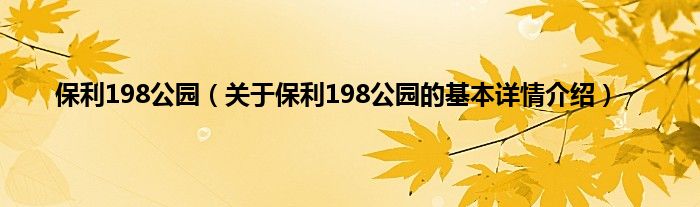 保利198公园(关于保利198公园的基本详情介绍)