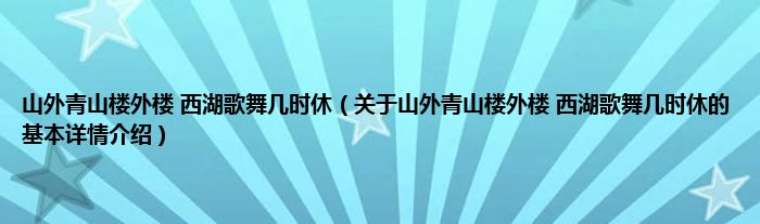本文关于山外青山楼外楼 西湖歌舞几时休的基本详情介绍就讲解完毕,希望对大家有所帮助。