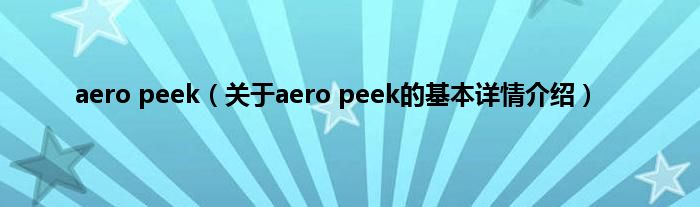 本文关于aero peek的基本详情介绍就讲解完毕,希望对大家有所帮助。