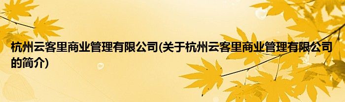 本文关于杭州云客里商业管理有限公司的简介就讲解完毕,希望对大家有所帮助。