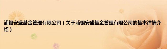 本文关于浦银安盛基金管理有限公司的基本详情介绍就讲解完毕,希望对大家有所帮助。