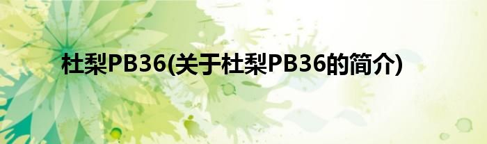 杜梨PB36(关于杜梨PB36的简介)